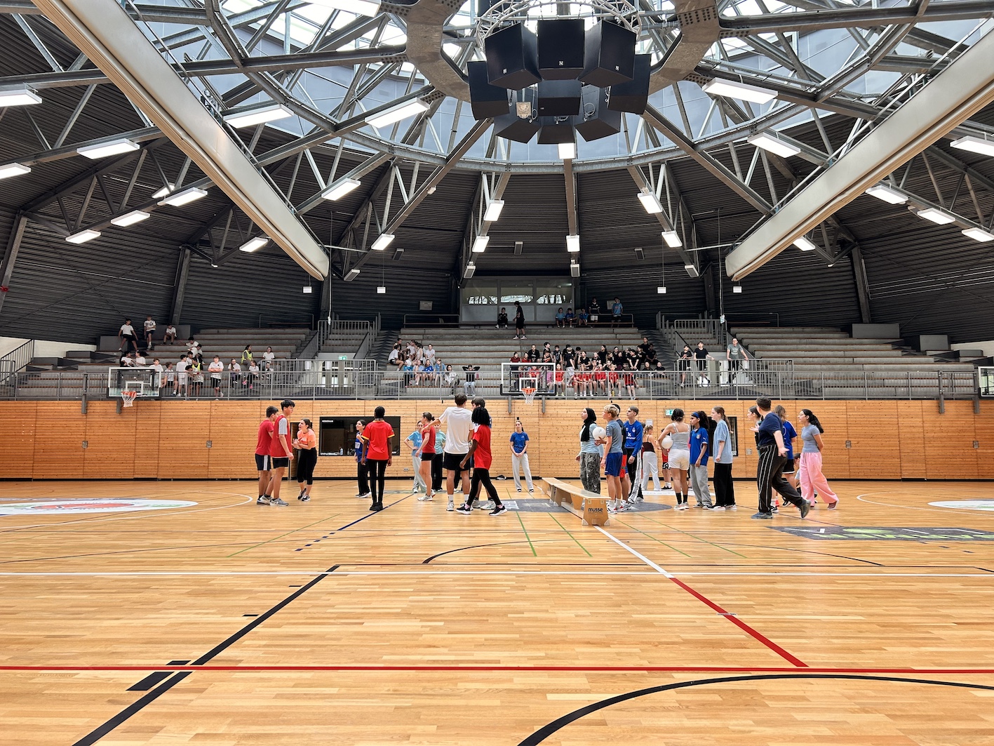 Nach der Begrüßung durch Herrn Breuing ging es mit einem gemeinsamen Aufwärmprogramm los, angeleitet durch die Sporthelfer der Q1.