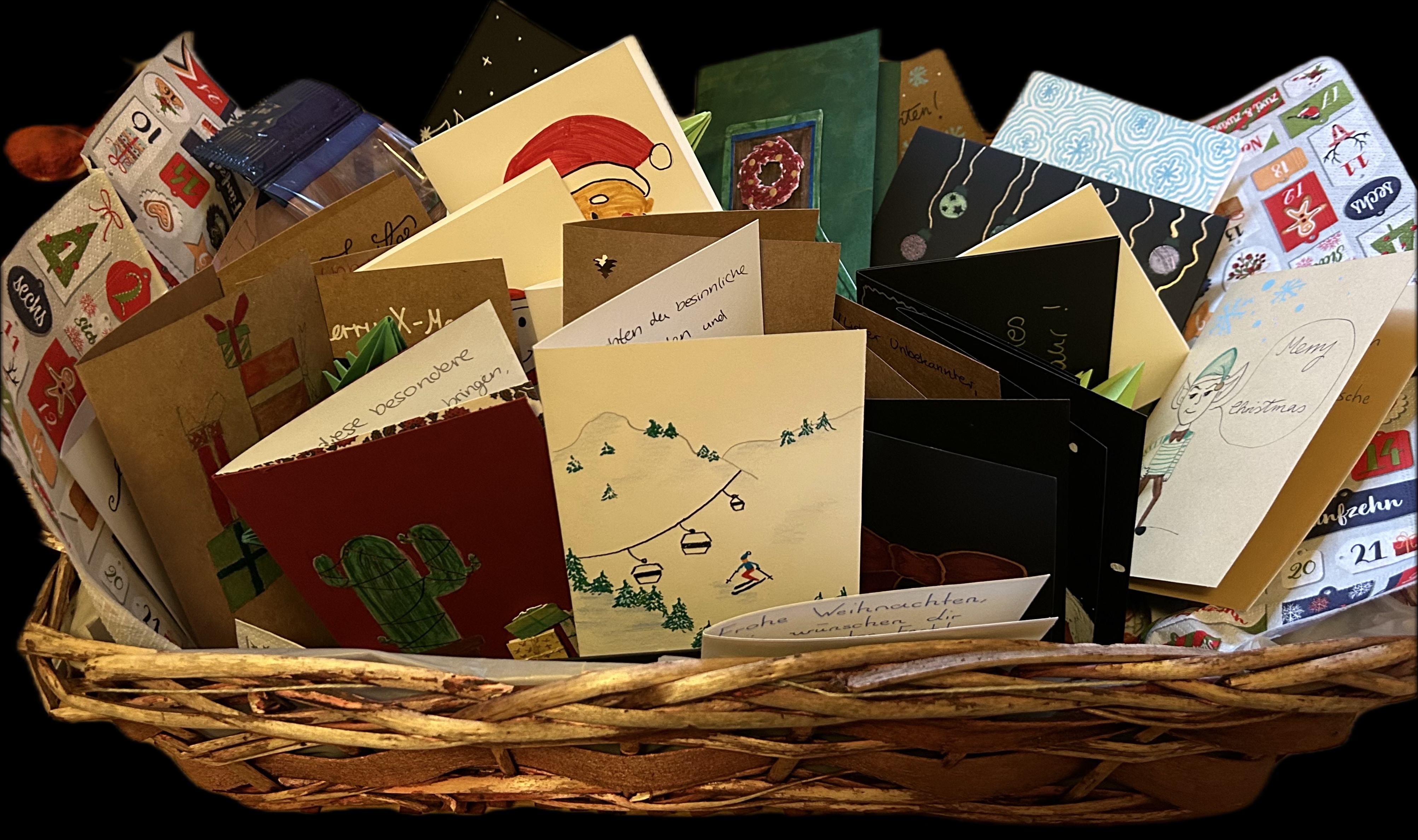 Für die Humanitäre Schule braucht es aber jedes Jahr noch ein weiteres Projekt. Im Stadtspiegel Bochum stolperten wir über einen Aufruf des Arbeiter-Samariter-Bund zu einer besonderen Weihnachtsaktion: Mit selbstgeschriebener Weihnachtspost wollte man Menschen in Seniorenheimen, die keine Angehörigen mehr haben, eine kleine Freude bereiten. Also wurden wir, der EF Kurs von Frau Köhn, kreativ und es entstanden viele tolle Weihnachtskarten, die wir zusammen mit ein paar Süßigkeiten und selbstgebastelten Weihnachtsbäumen beim ASB abgegeben haben. Von den Besuchshundeteams des ASB werden diese nun in den Seniorenheimen verteilt werden.