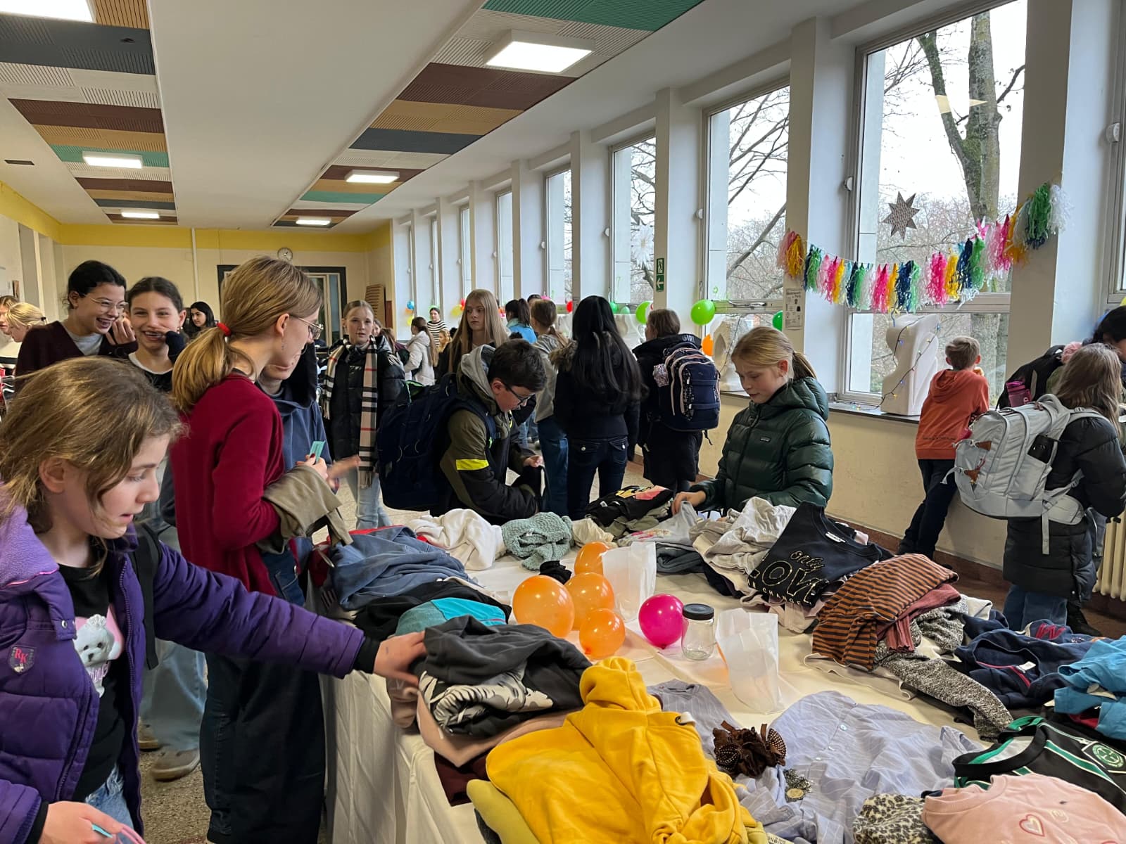 Viele Schülerinnen und Schüler haben im Vorfeld ihren Kleiderschrank gesichtet und die "Kleidung mit Geschichte" zum Kleidertausch auf den Kleidermarkt gebracht.