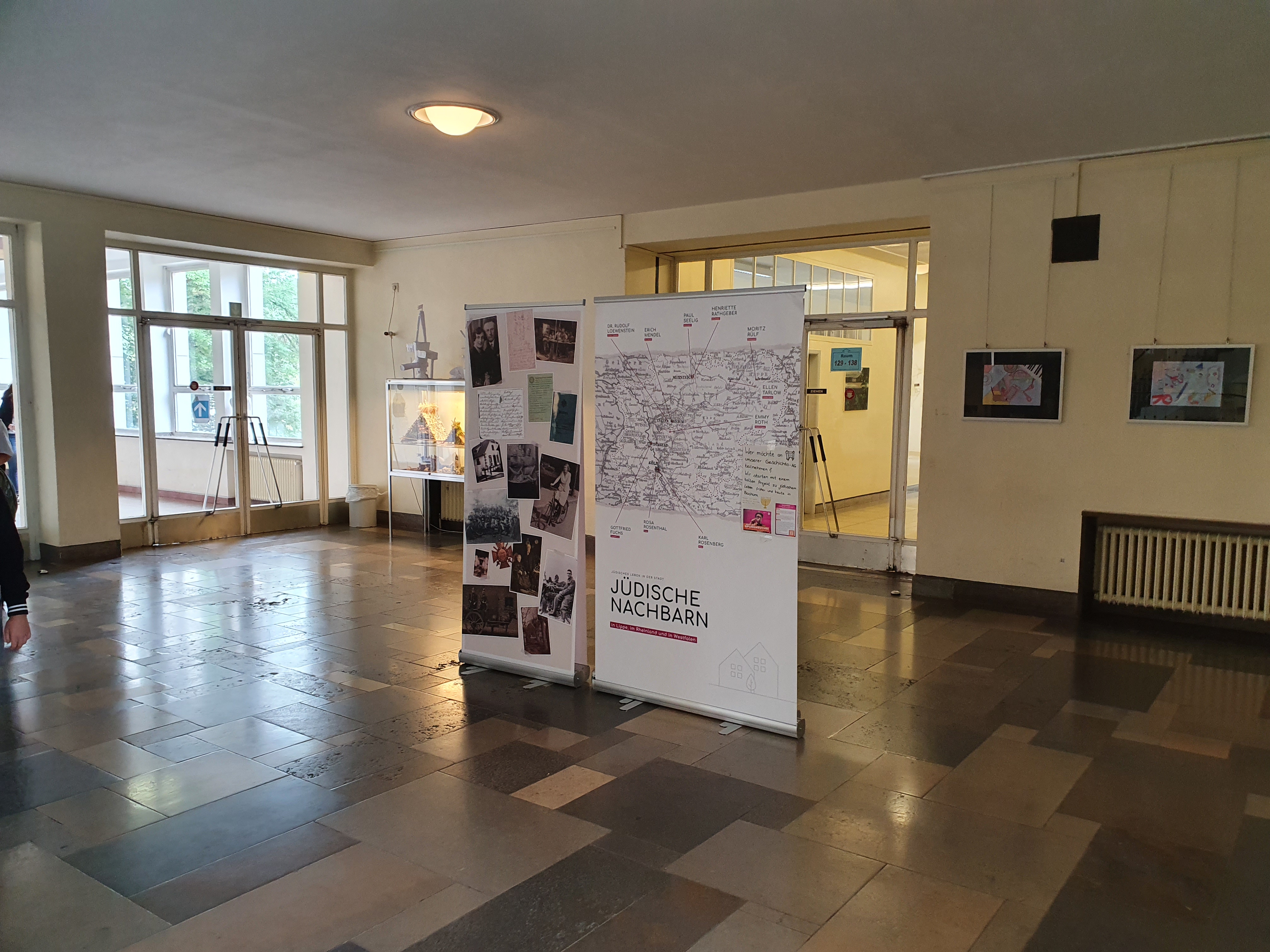 Ihn und andere Jüdinnen und Juden, die früher ganz selbstverständlich als Mitbürger*innen in Städten und Dörfern lebten, stellt die Wanderausstellung „Jüdische Nachbarn in Lippe, im Rheinland und in Westfalen“ vor. Diese Ausstellung auf Roll-Ups, die in der oberen Pausenhalle und im Durchgang vor dem PC-Raum steht, wird noch bis zum 01. Oktober bei uns an der Schule zu Gast sein.