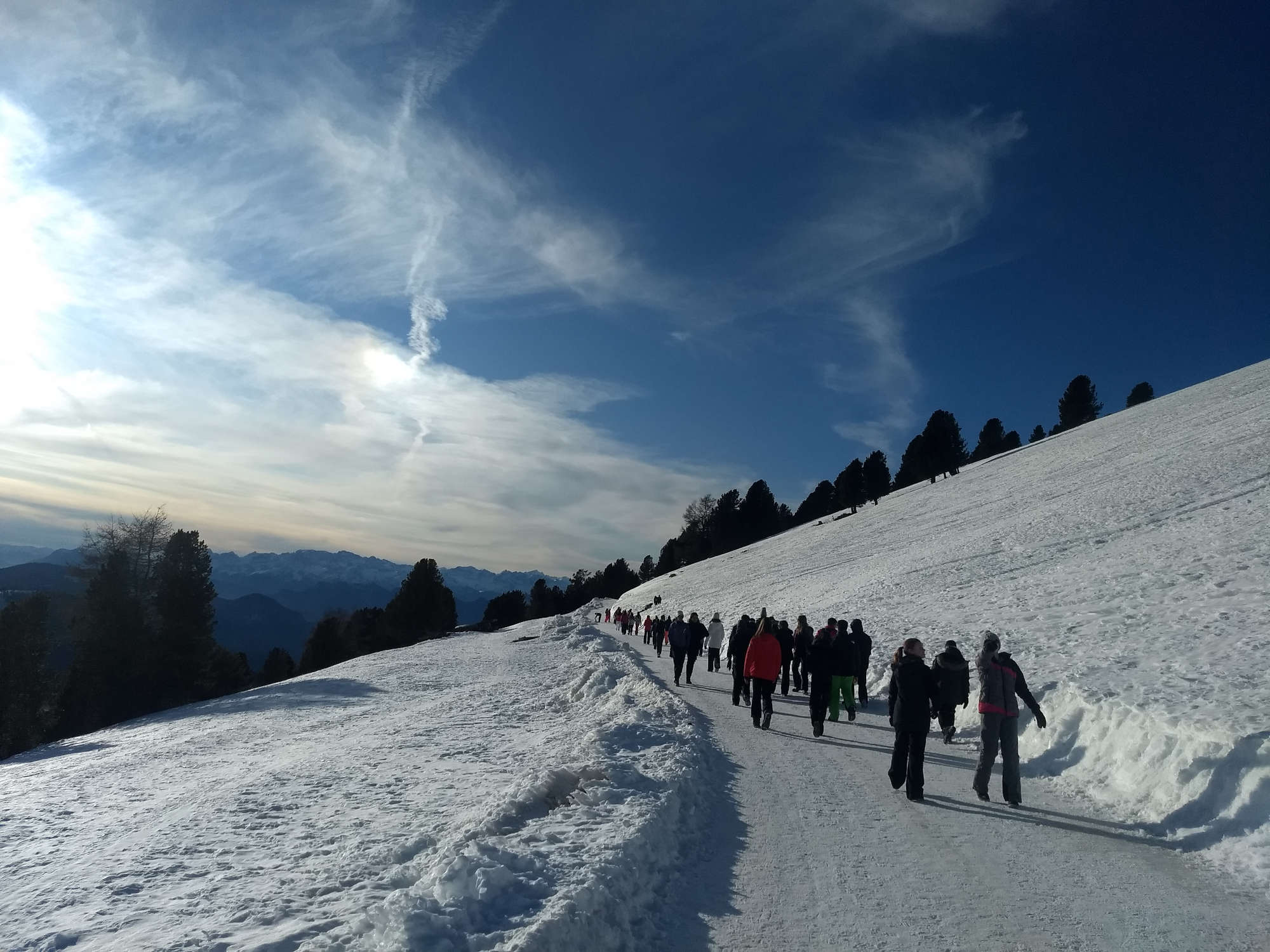 Am heutigen Tag wurden wir wie immer um 7 Uhr geweckt und natürlich ging es nach dem Anziehen um 8 Uhr zum Frühstück. Dann ging es weiter mit dem Tagesprogramm: Von 9 Uhr bis 11 Uhr gab es wieder die Skikurse in den jeweiligen Gruppen. Im Anschluss gab es um 12 Uhr unser Mittagessen, woraufhin es gleich wieder auf die Piste ging. Nachdem wir unsere Fähigkeiten im Skifahren weiter entwickeln konnten, verbrachten wir die Zeit mit den Kicker- und Tischtennisturnieren oder in der „Bar“. Aber lange mussten wir nicht auf Essen verzichten. Schon um 18 Uhr gab es Abendessen, abgerundet durch eine Wanderung zum Auerleger. „Auer“ steht hier nicht für Schmerzen! Ganz im Gegenteil. Dort wurde gefeiert, getanzt und einfach Spaß gehabt. Wir aßen gemeinsam die südtiroler Spezialität namens „Strauben“ und danach durften wir im Dunklen durch den Wald zurück ins Hotel wandern. Das war der schönste Abschluss des Tages.