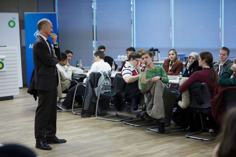 Am Dienstag, den 04. Februar 2020 besuchte der Grundkurs Erdkunde bilingual der Jahrgangsstufe Q2 in Begleitung von Frau Vormittag das Unternehmen BP. Nach einer Bustour über das Gelände der Raffinerie in Gelsenkirchen stand ein Besuch der Ausbildungswerkstatt auf dem Programm. Es wurde deutlich, wie komplex und vielfältig die Verarbeitung von Erdöl zu Alltagsprodukten wie Benzin und Kunststoffen ist. Ein besonderes Highlight war die anschließende Diskussion mit dem Vorstandsvorsitzenden von BP Europa SE, Herrn Wolfgang Langhoff. Bei diesem „Dialog mit der Jugend“, der von der „TalentMetropole Ruhr“ organisiert wurde, stand insbesondere die Frage nach nachhaltigen Krafstoffen für die Mobilität der Zukunft im Vordergrund. Herr Langhoff gab den Schülerinnen und Schülern aber auch wertvolle Tipps für ihren eigenen berufichen Werdegang.