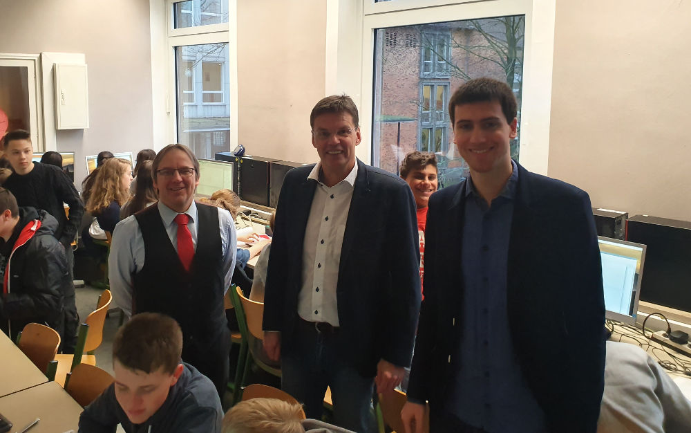 Seit den Sommerferien steht der Experimentalcomputer Raspberry Pi im Mittelpunkt des Unterrichts im Wahlpflichtfach Mathematik/Physik der Klassen 8 und 9. Die Einführung der Geräte ist Teil der Strategie der Hildegardis-Schule zur digitalen Bildung. Die Schülerinnen und Schüler lernen die Grundlagen des Programmierens in der Programmiersprache Python und damit einen wichtigen Baustein der informatischen Grundbildung. Durch eine Schnittstelle zum Anschluss von elektronischen Sensoren, Bauteilen und ganzen Schaltungen können spannende Projekte aus dem Bereich der Elektrotechnik physikalisch umgesetzt und anschließend mit dem Raspberry Pi gesteuert werden.