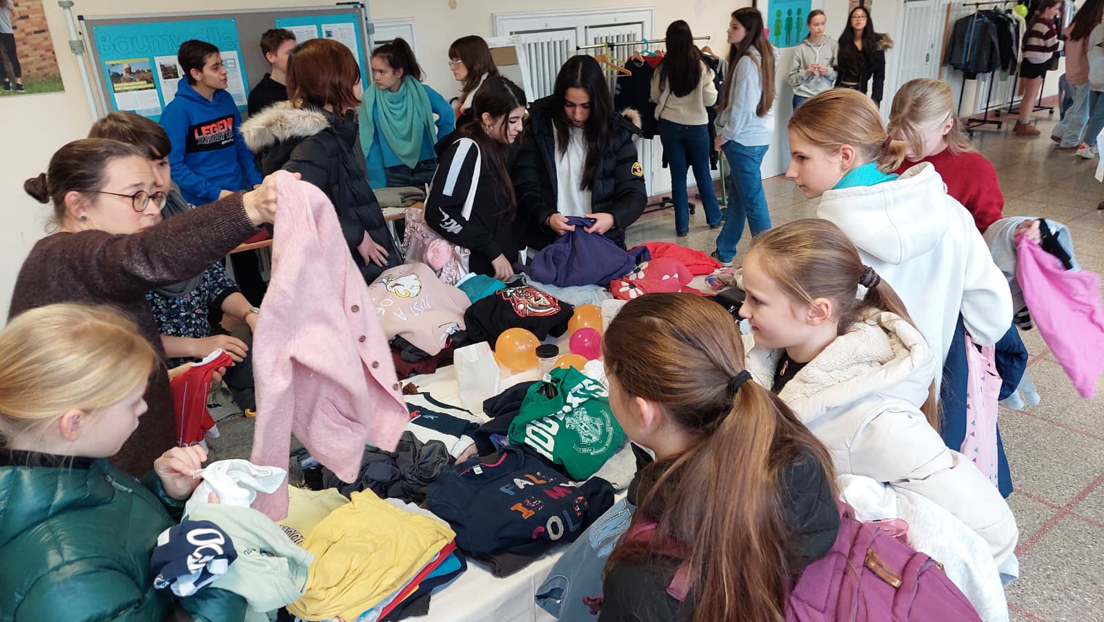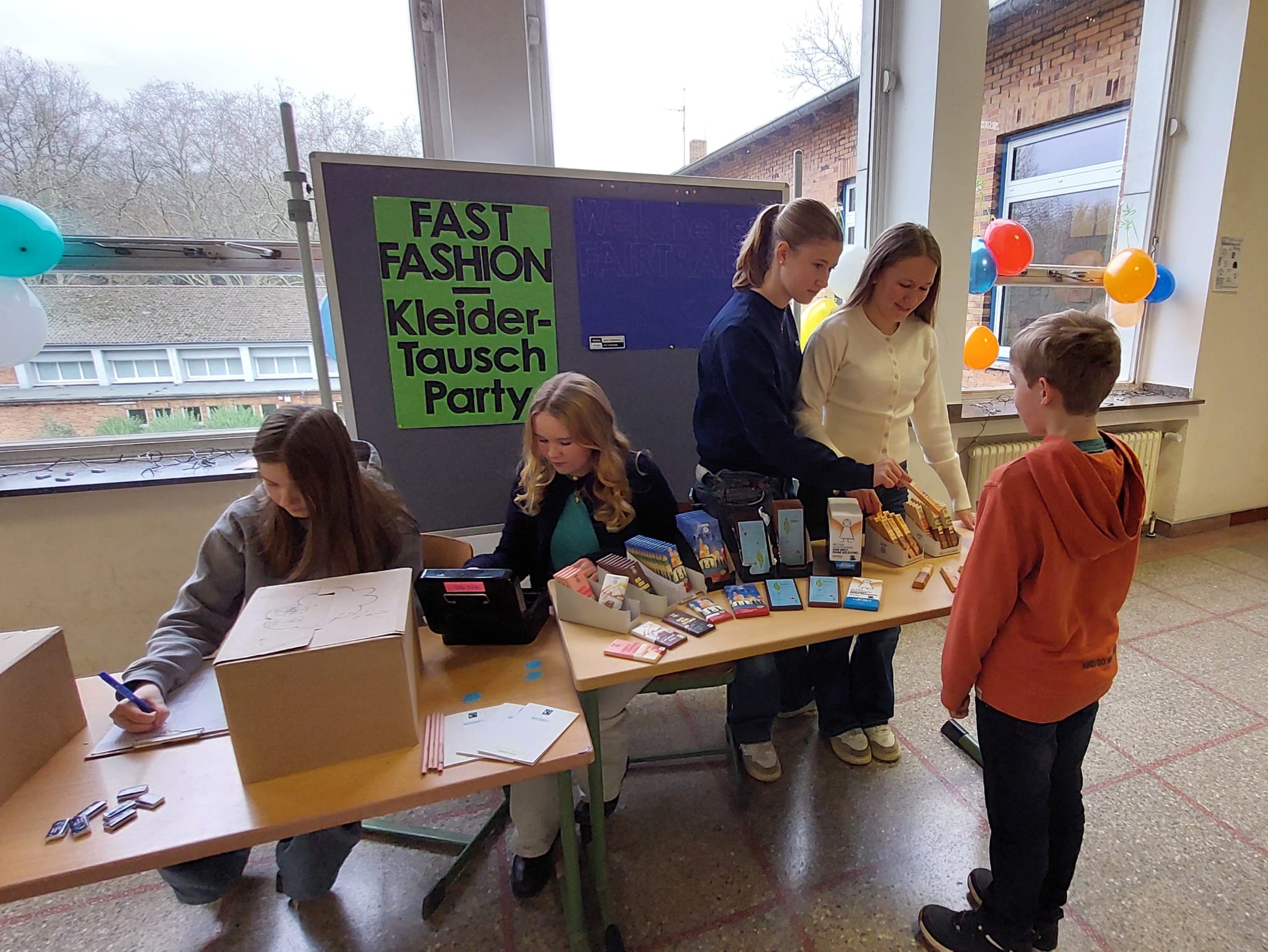 Viele Schülerinnen und Schüler haben im Vorfeld ihren Kleiderschrank gesichtet und die "Kleidung mit Geschichte" zum Kleidertausch auf den Kleidermarkt gebracht.