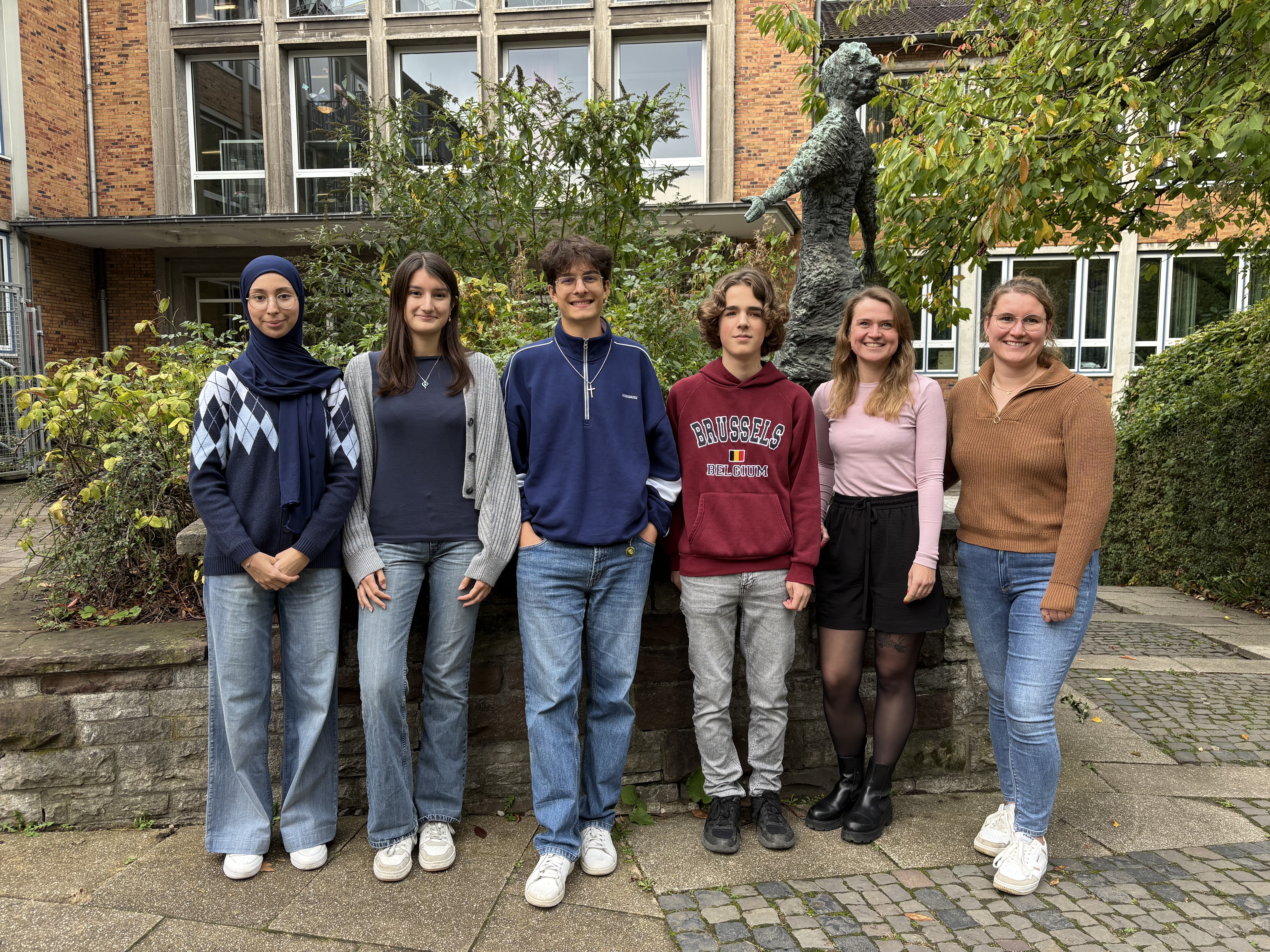 Layla Mainoun (EF), Filomena Rodi (Q1), Mark Achji (Q1), Oscar Kyba (EF), Frau Nowotny, Frau Mattern